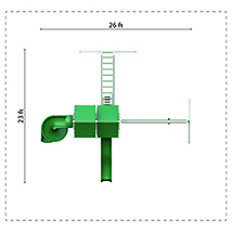 One 5′ High Tower | One 7′ High Tower | Two Decks | 8′ or 10′ High swing Frame Attachment | Sandbox Area | Ladder | Ladder HandrailSwipe to see more