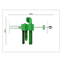 The Denali 5×10 Vinyl Playset – Layout 3 offers a multi-level adventure with climbing, swinging, and sliding fun. Kids can climb the 7′ rock wall or navigate the 5′ cargo net before choosing between the thrilling 10′ Wonder Wave Slide or the twisting 7′ Tornado Tube Slide.