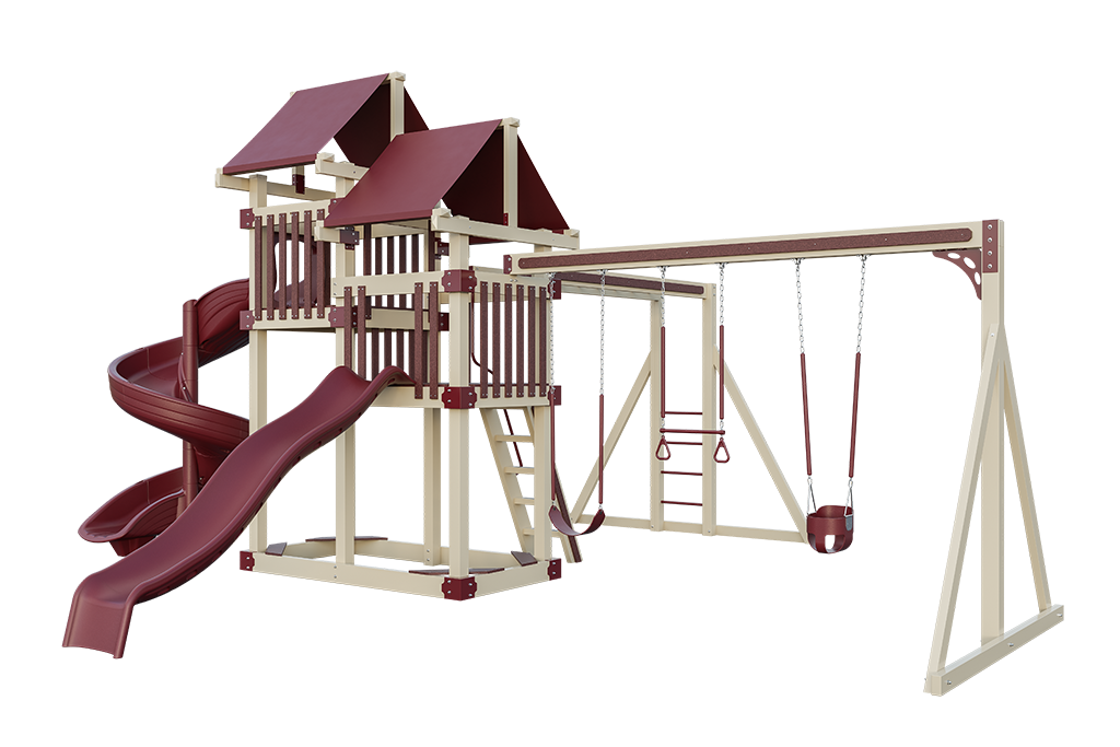 We’d love to help you customize a vinyl playset for your backyard.