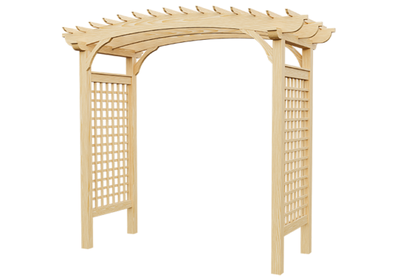 Bring timeless elegance to your garden with the 5′ x 9′ Brandywine Arbor. Traditional in style with charming lattice sides, this handcrafted piece adds a touch of sophistication and flair to any outdoor space. Made from pressure-treated pine, it ensures lasting durability and strength. Whether framing a pathway or creating a garden focal point, the Brandywine Arbor is the perfect blend of beauty and function for your landscape. Choose from 6 stunning stains, or opt for an unfinished look to make it your own!