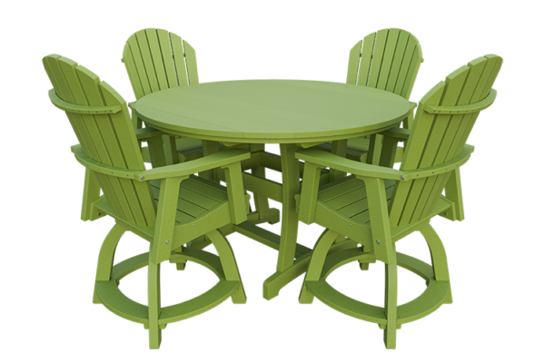 Transform your outdoor space with this Adirondack Set, featuring a 54″ round Adirondack table and 4 Adirondack swivel counter-height chairs. Expertly Amish-crafted from premium poly with stainless steel hardware, this set combines timeless Adirondack charm with modern functionality. The swivel chairs offer comfort and ease of movement, while the spacious table is perfect for gatherings or casual dining. Built with heritage construction, this set is durable and weather-resistant and outperforms the competition in both quality and style, making it the perfect choice for outdoor entertaining.