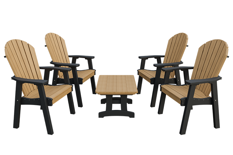 Experience the perfect blend of comfort and style with the Adirondack Conversation Set, which includes 4 Adirondack dining armchairs and a rectangular Adirondack coffee table. Each piece is Amish-crafted using premium poly and stainless steel hardware for superior durability and weather resistance. The dining armchairs provide exceptional support, while the spacious coffee table offers ample room for outdoor dining or casual get-togethers. Built with heritage construction, this set surpasses the competition in quality, making it an ideal choice for those seeking long-lasting elegance and comfort in their outdoor living space.